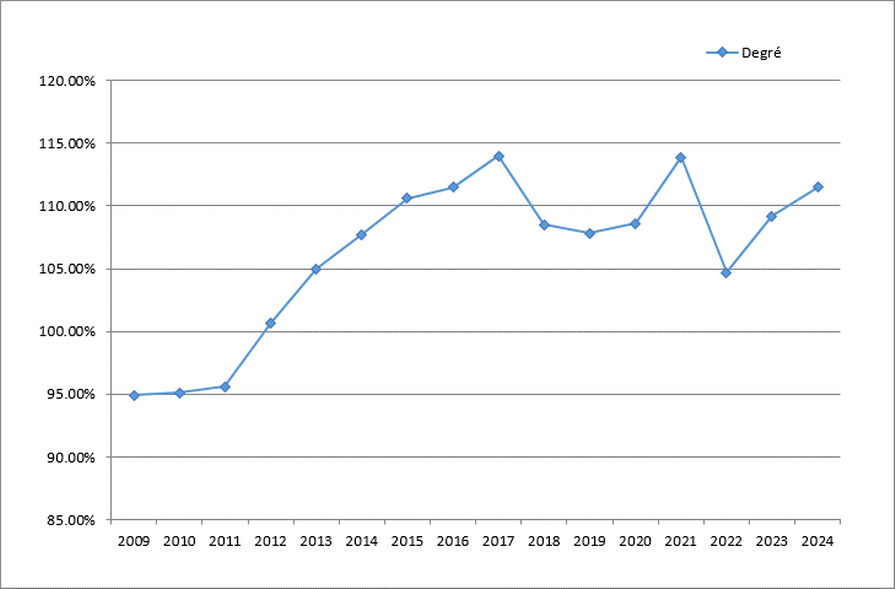 Le taux de couverture s'élève à 112,00 % au 31.12.2024.